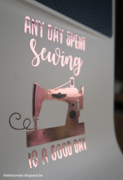 Ik ben grote fan van de rose gold-vinyl en pimpte er in één beweging mijn naaimachine nog mee.