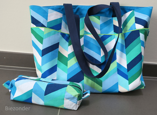 | Stof met visgraatmotief: Robert Kaufman (bij Stofrenke) Tassenband: Littevixen |