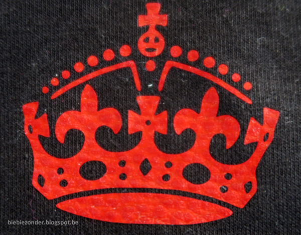 - Flexfolie zebra: Dit vond ik de moeilijkste. Omdat het folie nogal druk is op zich, was ik wat bang voor een overdadig resultaat. Ik hou zelf nogal van soberheid en strakheid. Maar ja, een tester moet af en toe uit zijn comfortzone treden. Ik ging voor een gestileerde ridder, die ik zette op een oranje t-shirt voor de oudste zoon. Het resultaat is inderdaad redelijk opvallend, maar ik vind het wel kunnen voor een kleuter! Lekker stoer!