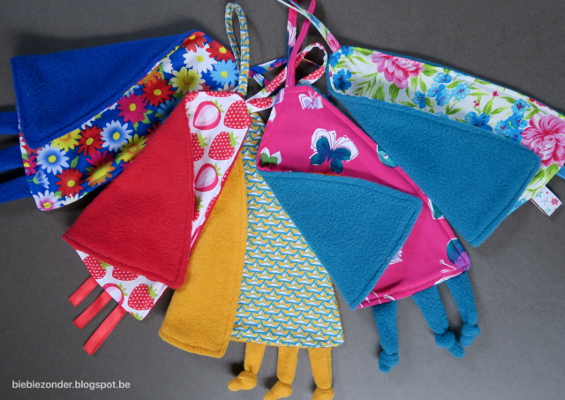 Ik naaide enkel mee met de eerste sewalong, maar ben toch heel blij dat ik 5 tutdoekjes kan opsturen naar het verzamelpunt. Ideaal om wat restjes te verwerken, want ik ben zo zuinig op mijn stofrestjes dat er hier na al die jaren een reuzengrote zak staat, vol kleine lapjes.