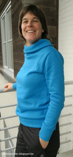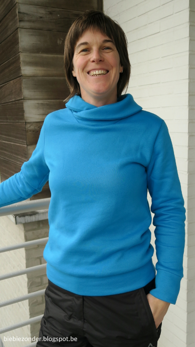 Sinds het zo koud is buiten, miste ik een lekker warme, comfortabele trui. “Toevallig” kocht ik onlangs op het Stoffenspektakel een prachtige blauwe sweatstof, met het plan iets voor mezelf te maken.