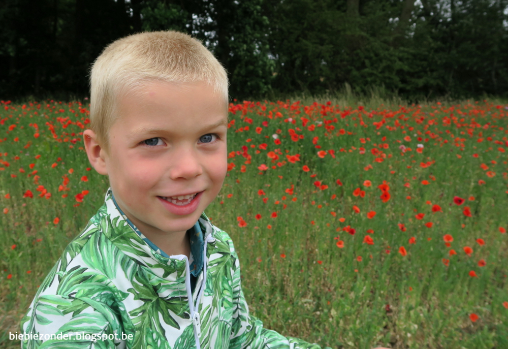 De zoon is apetrots op zijn nieuwe sweater. En als ’t kind blij is, is moeder dat ook. #bigsmile